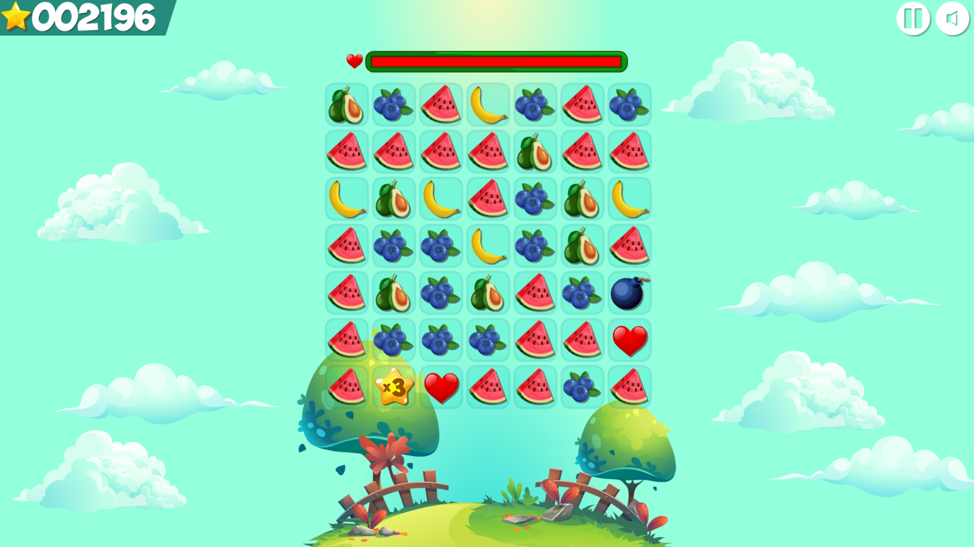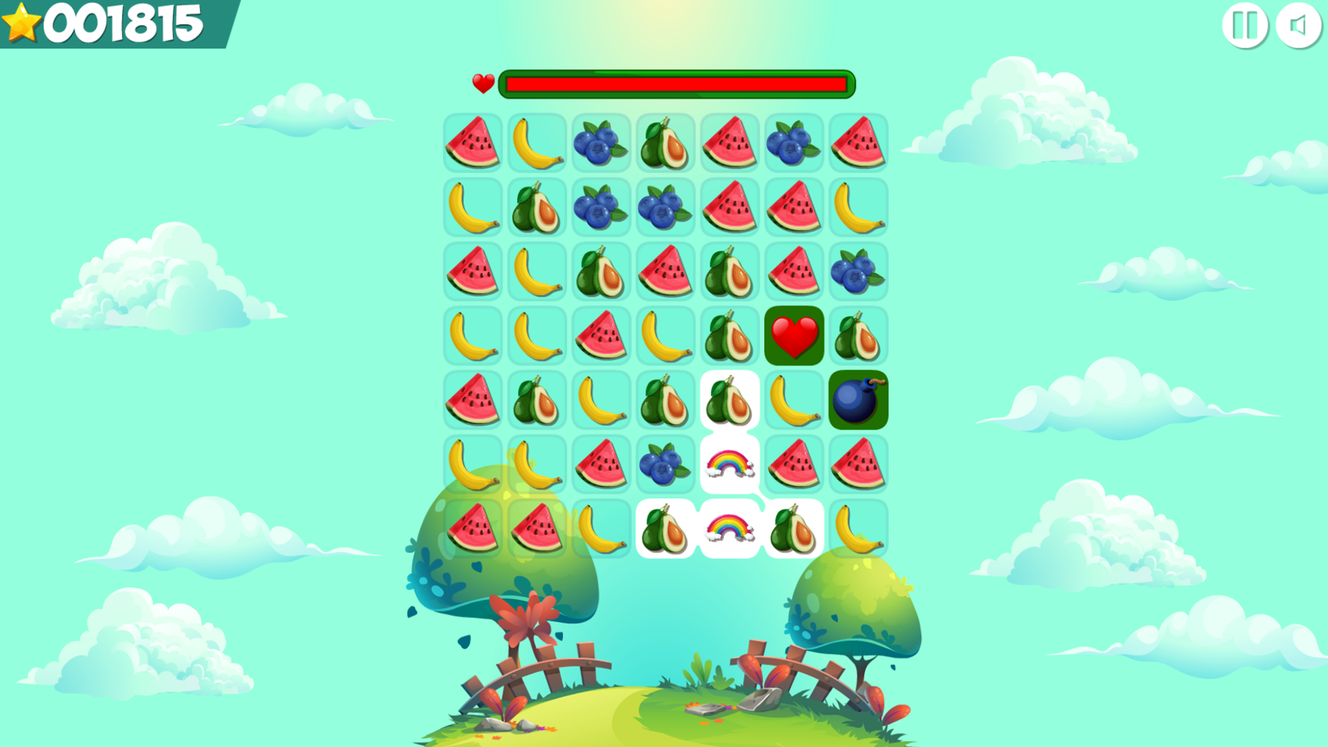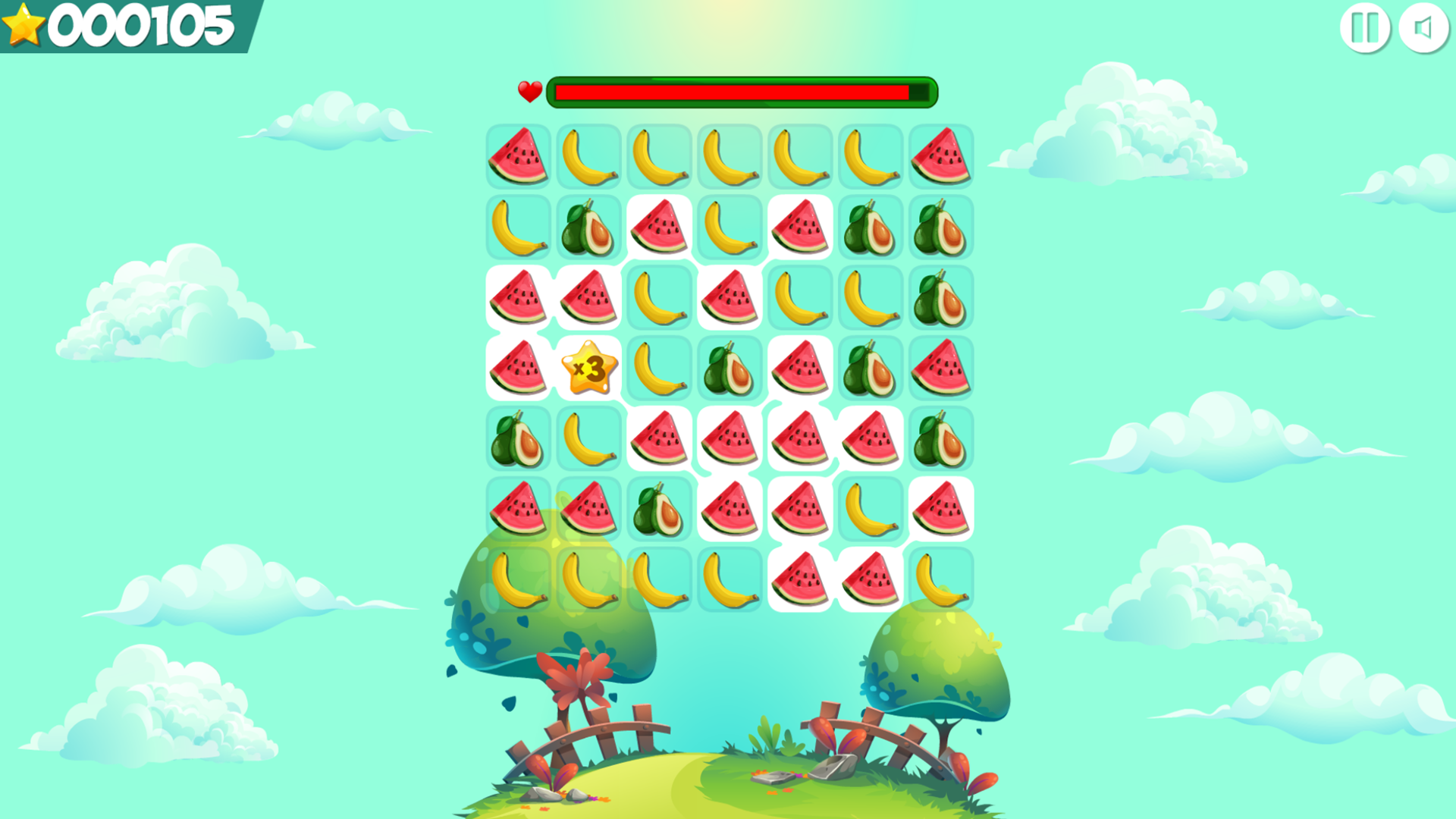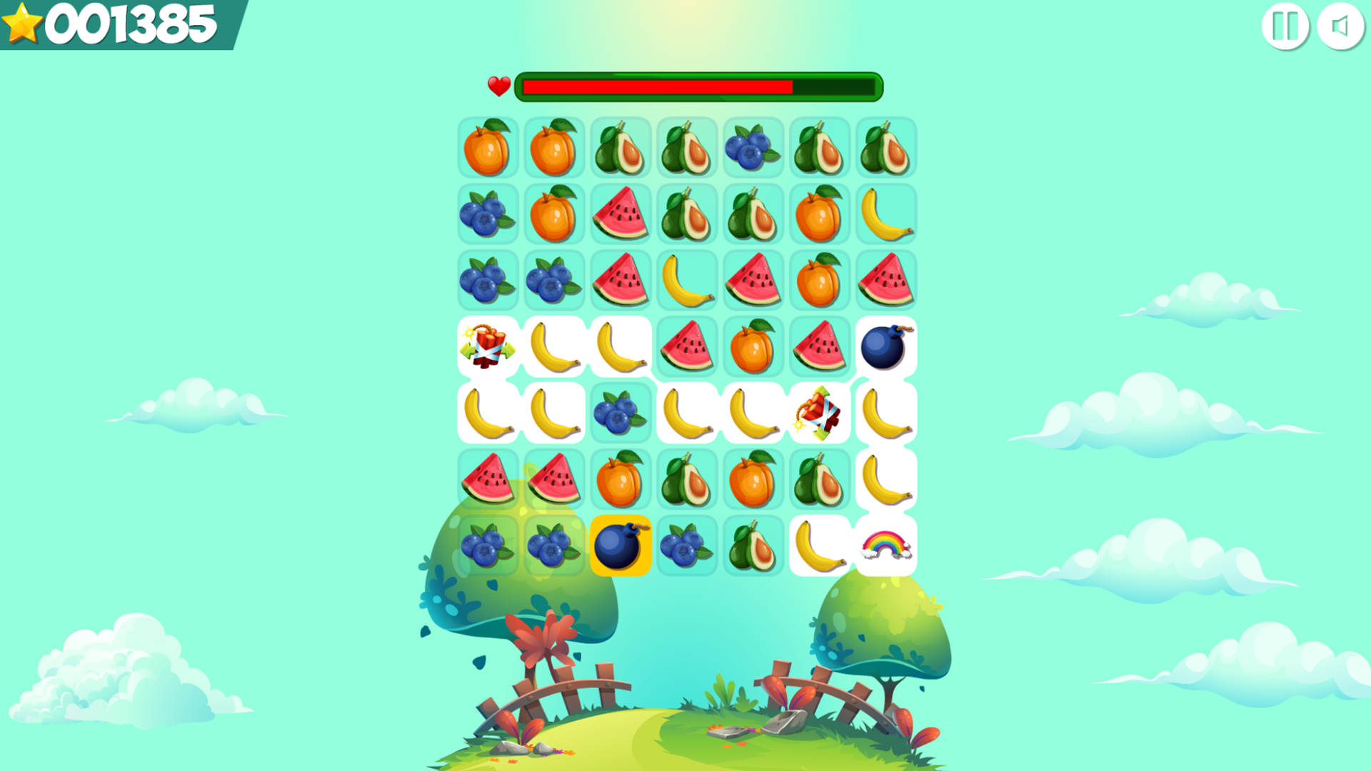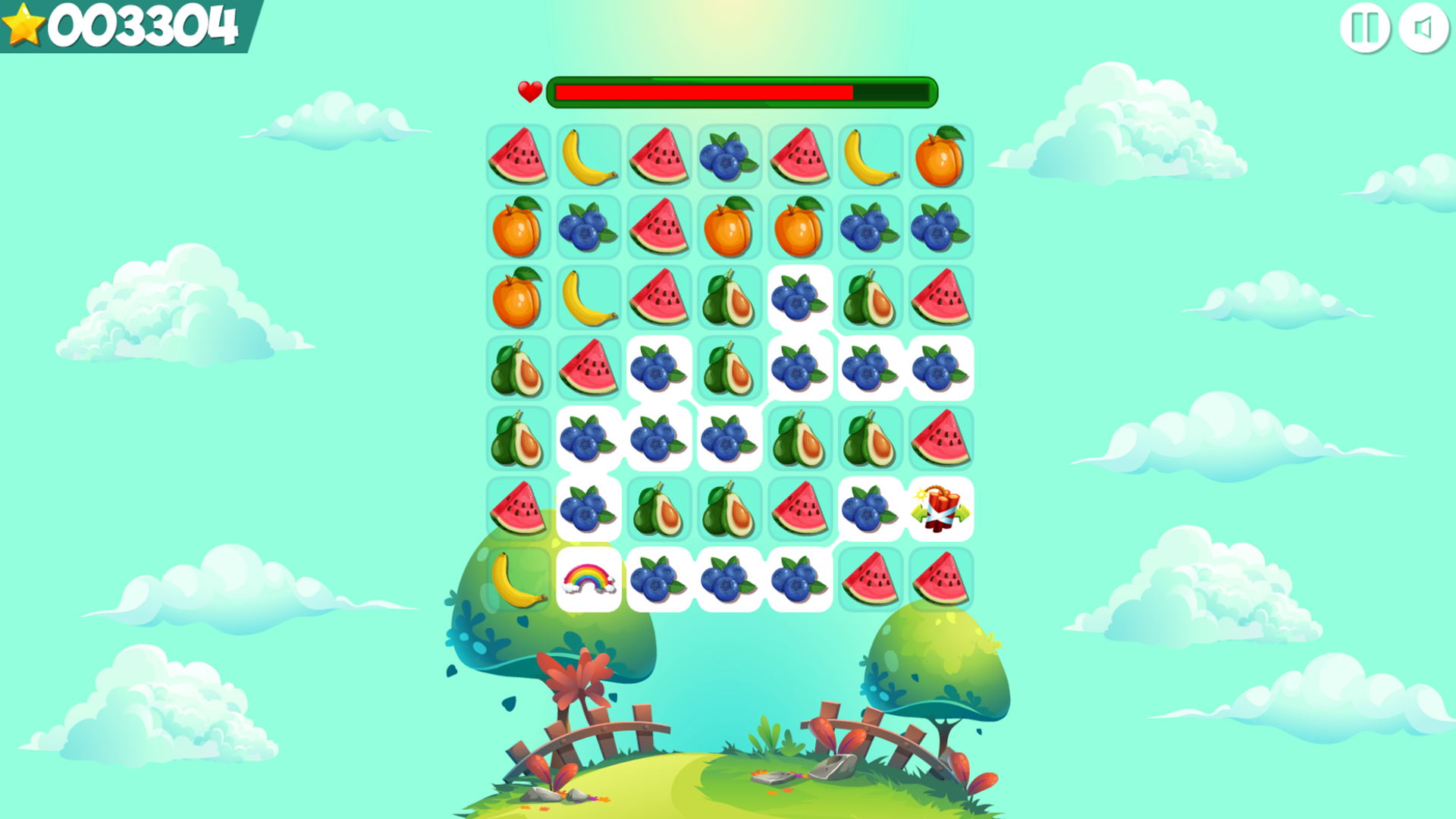 Fun and relaxing puzzle game, where you need to find chains of the same colored fruits on the board.