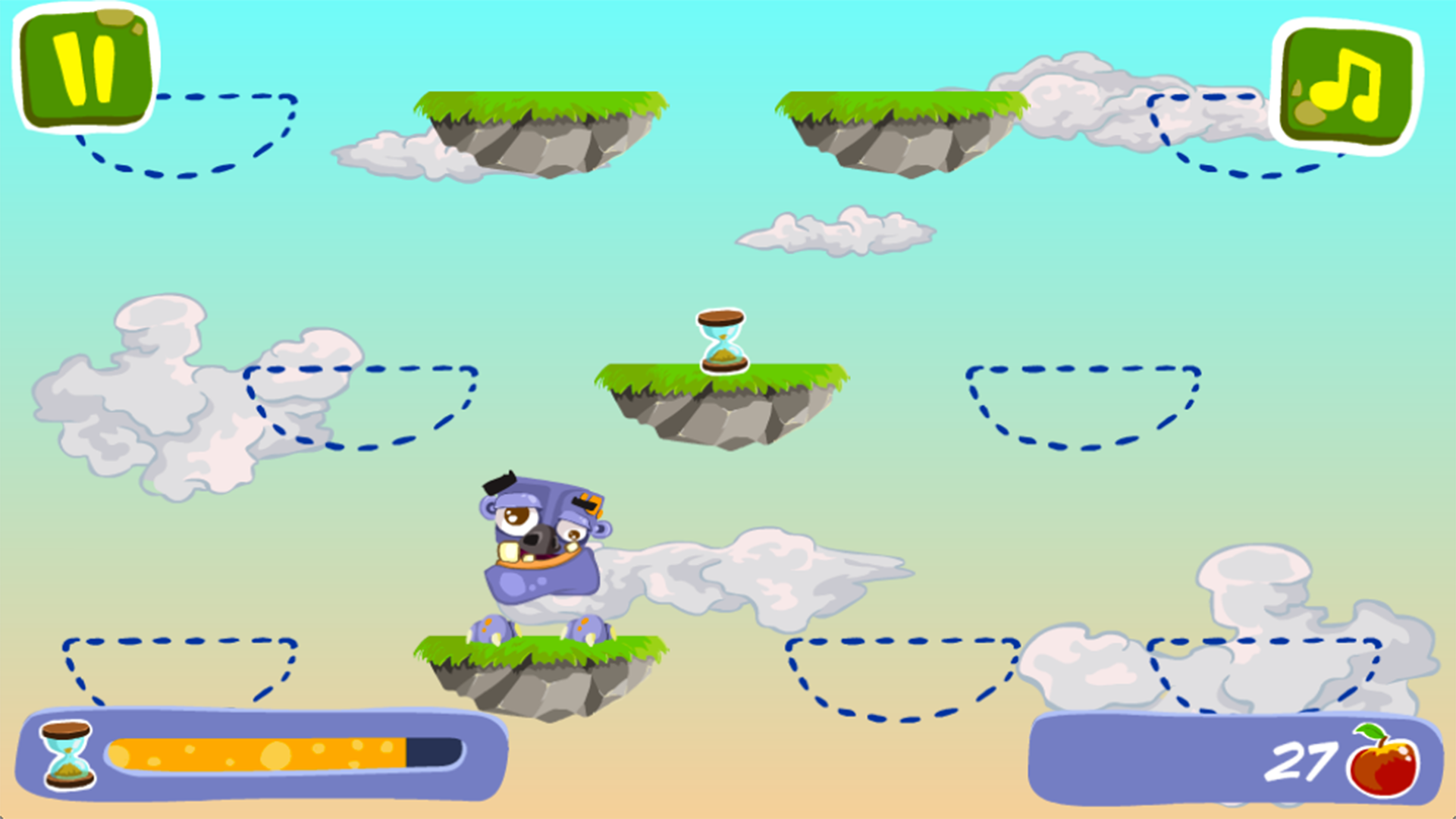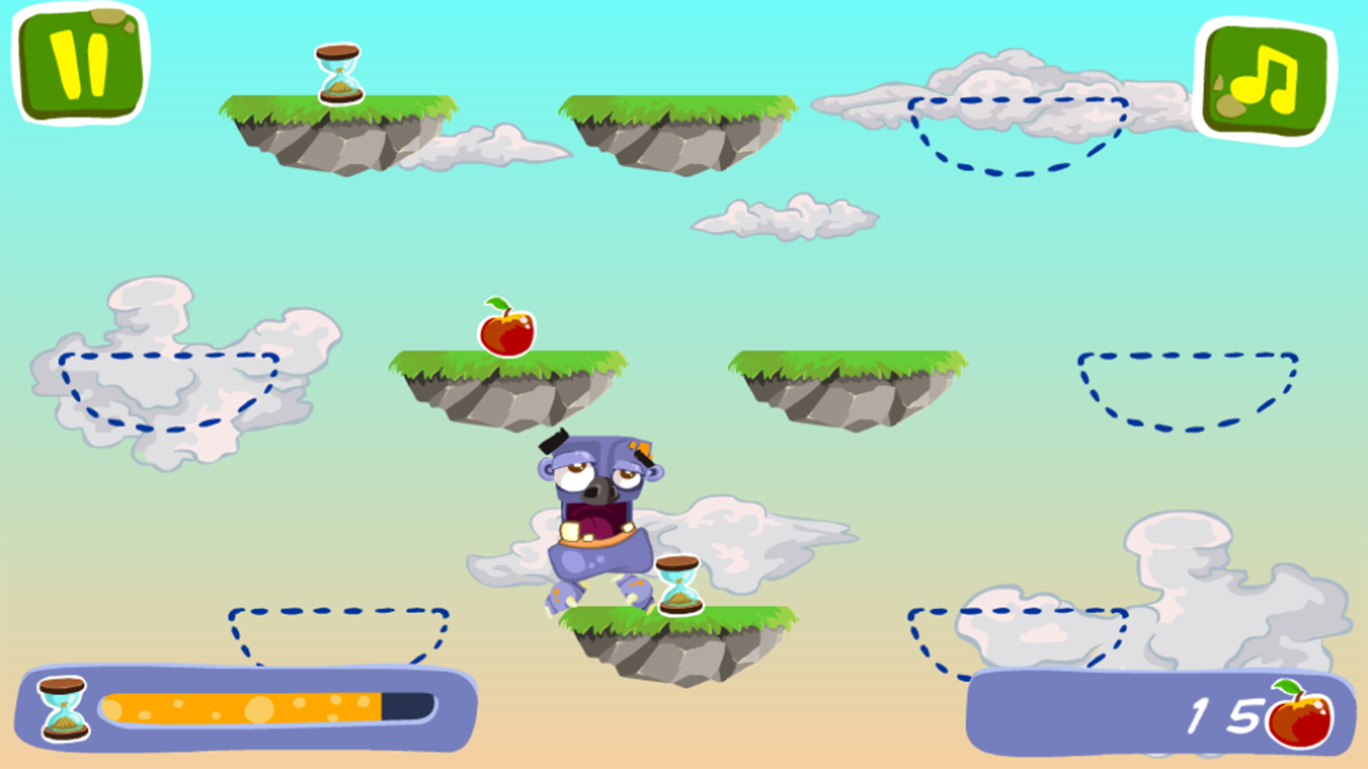 How many sweet apples would JomJom eat, before he’ll miss a platform and fall?