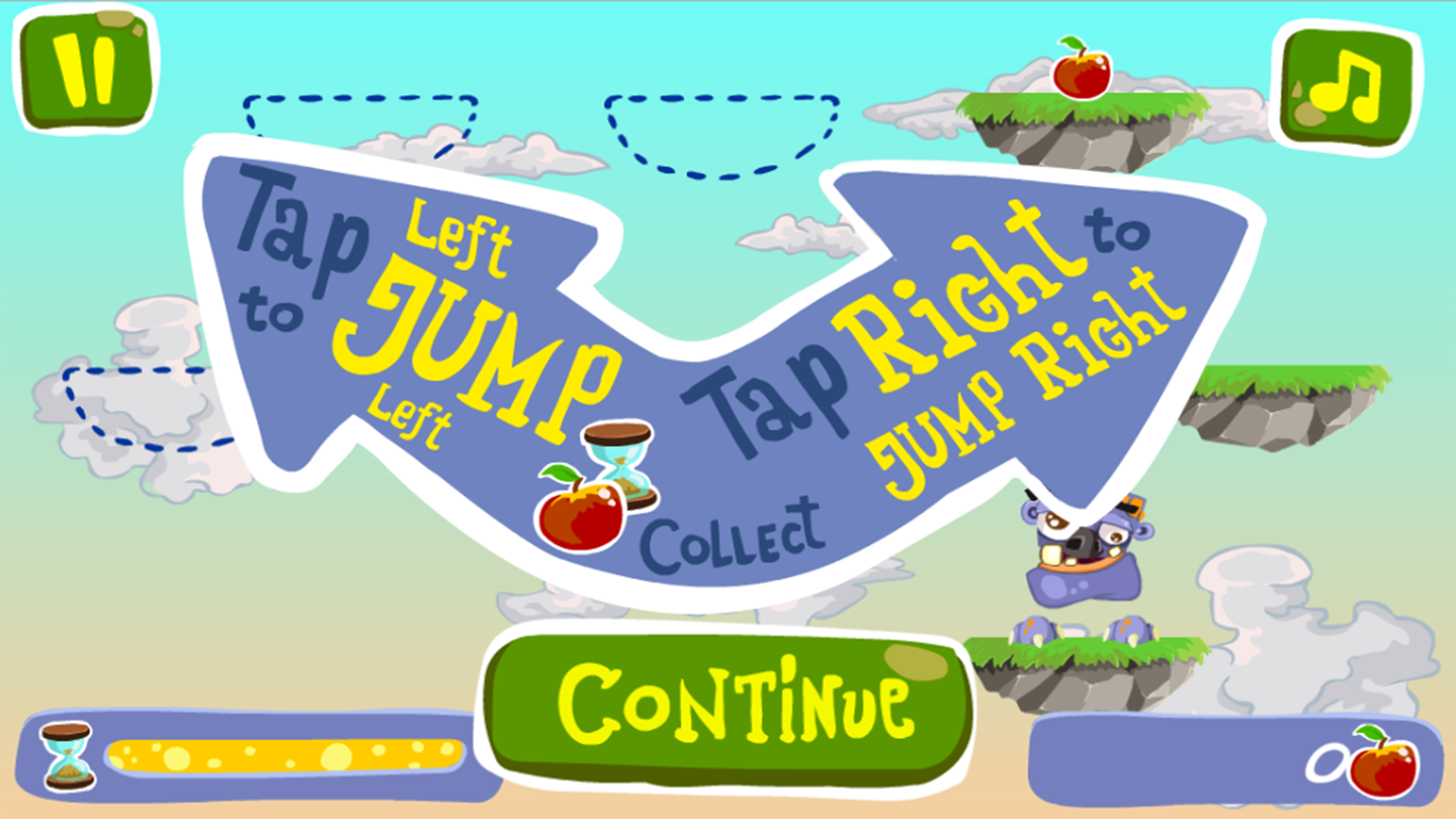 Tap right side of the screen to make JomJom jump right and tap the left side to jump left.