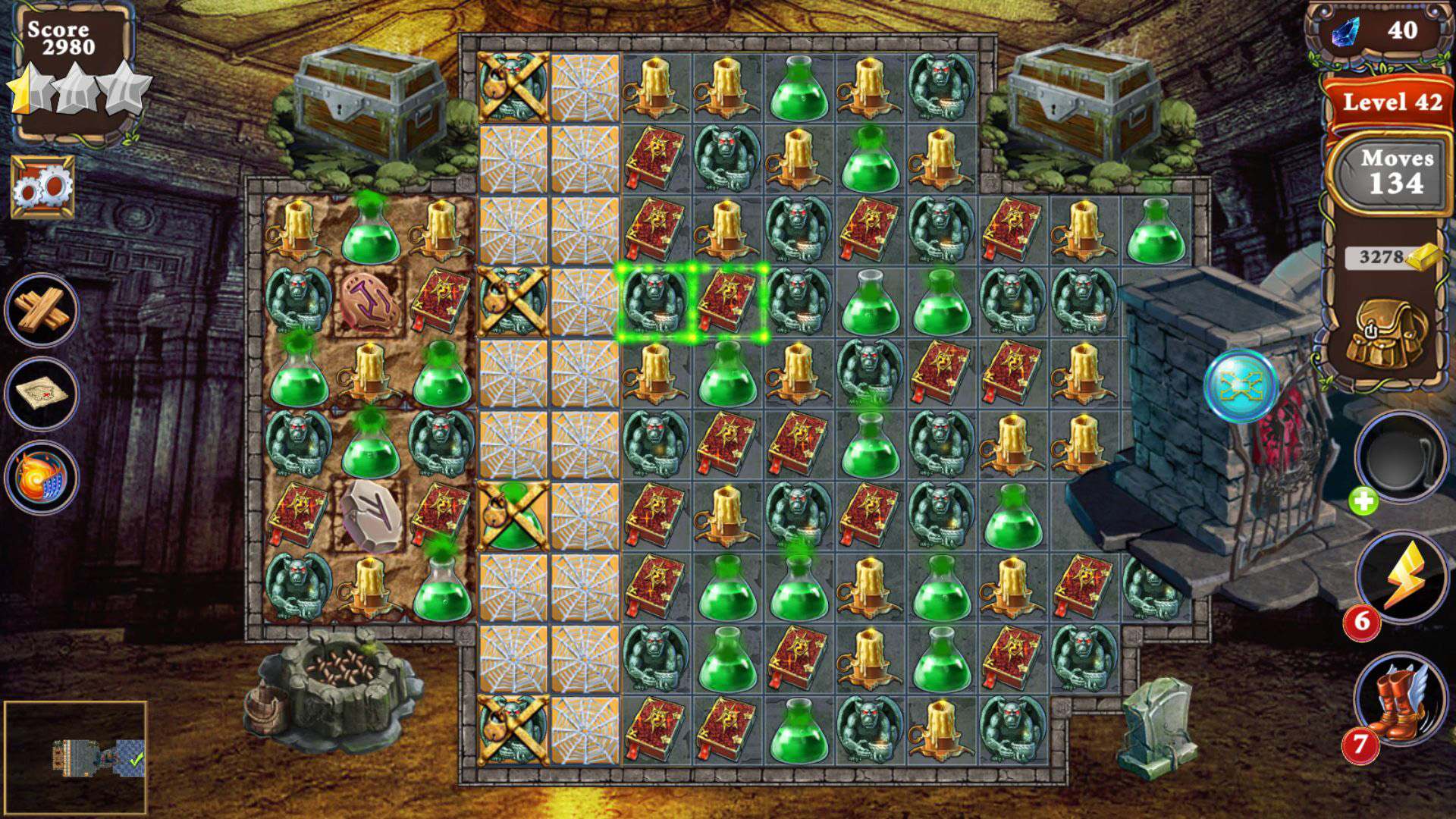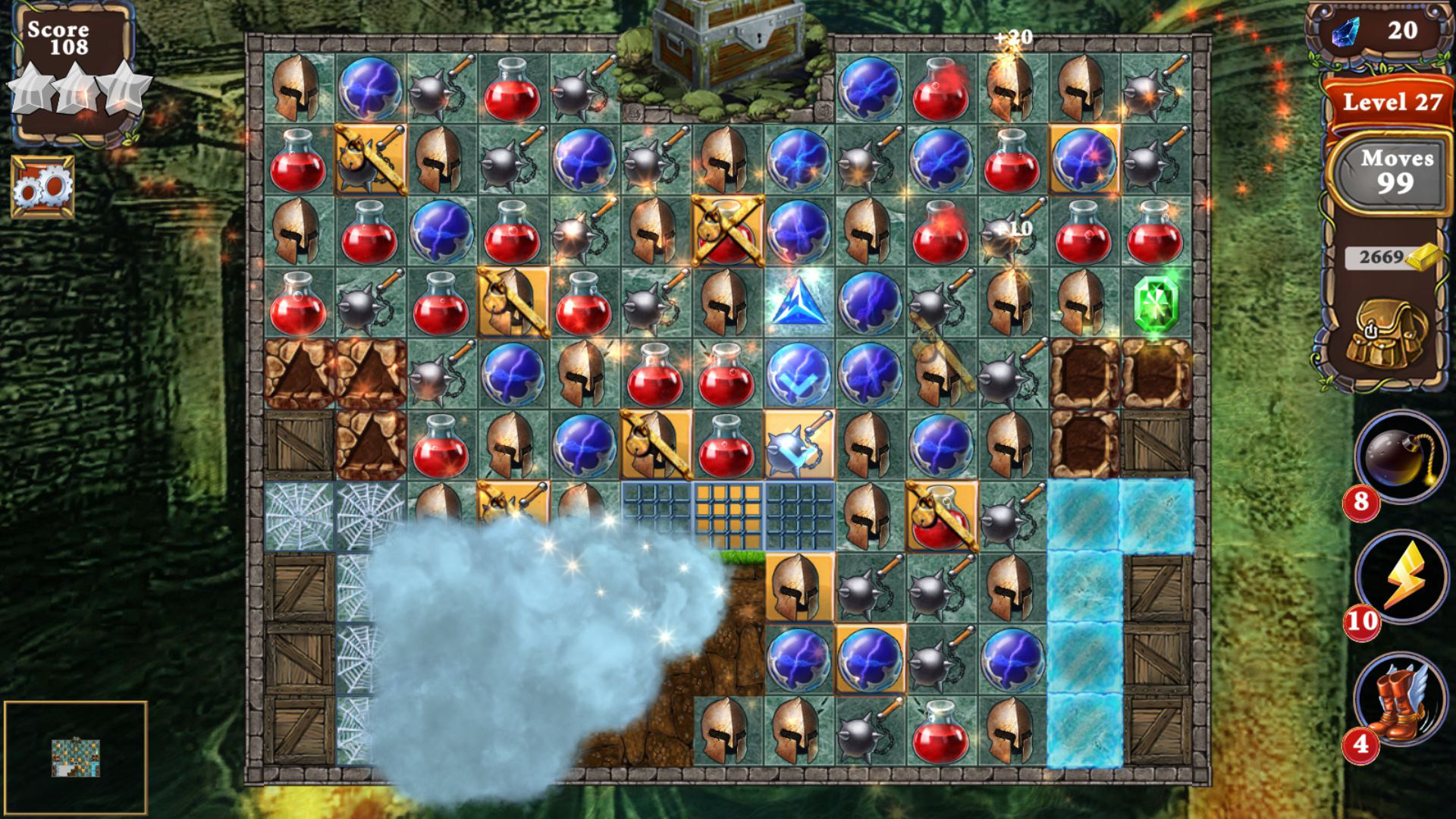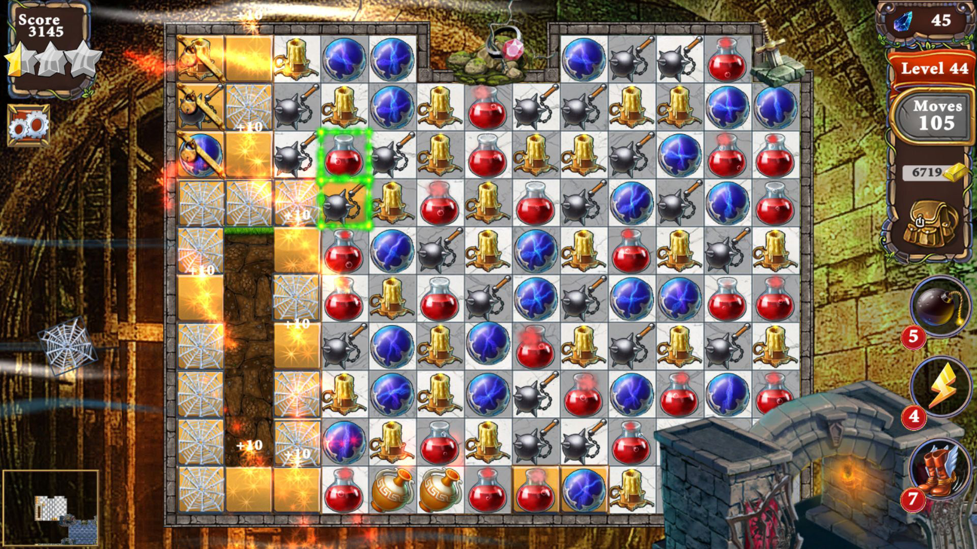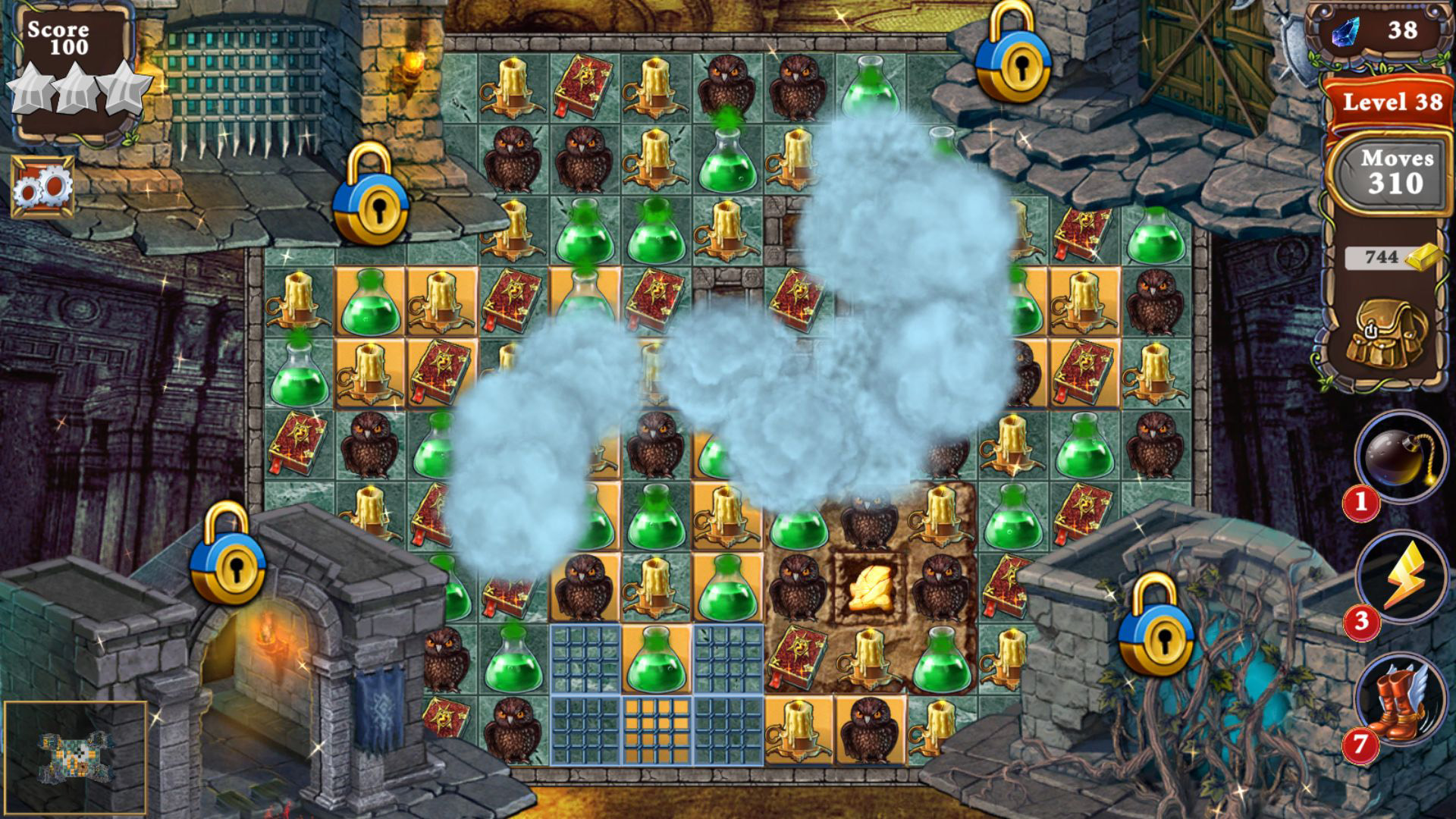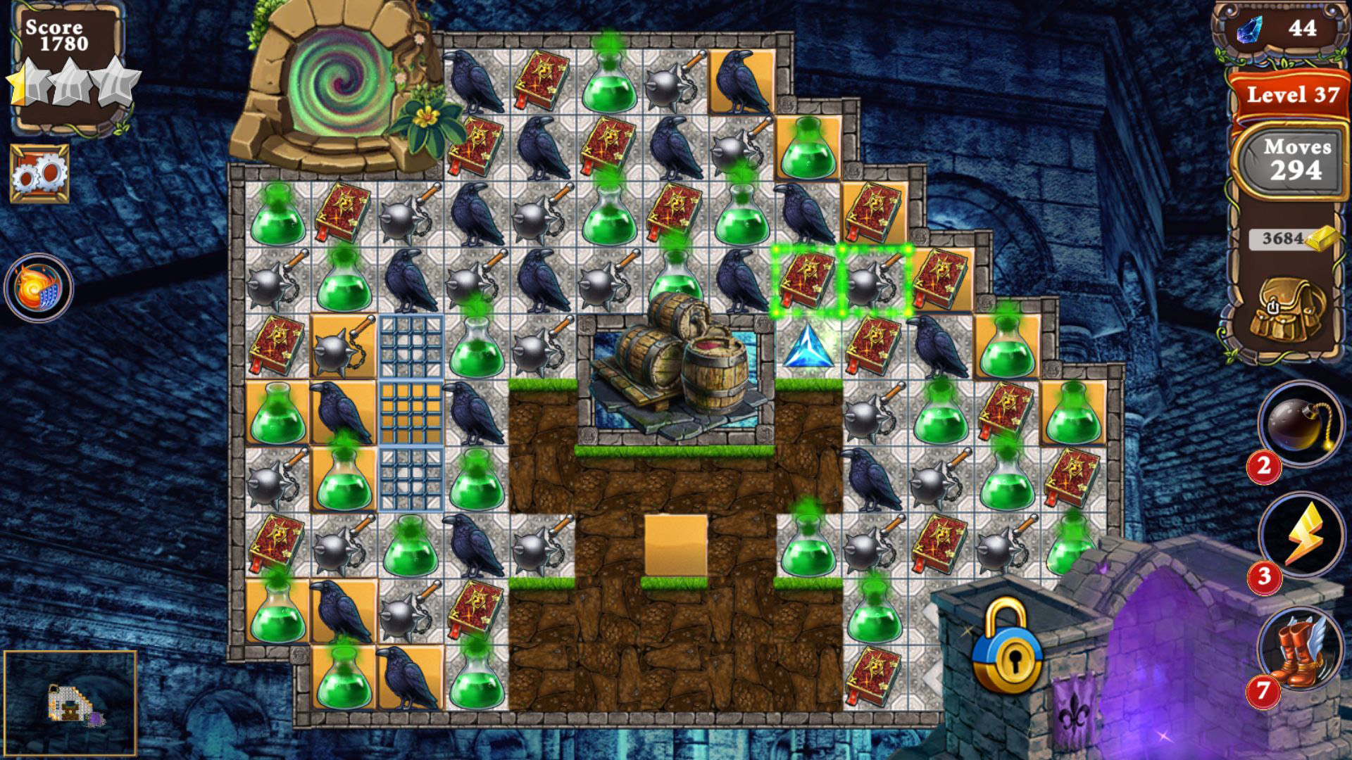 Discover secret pathways and collect precious treasures to rebuild majestic strongholds, but beware of hostiles roaming the dungeons. Solve quests and tricky puzzles with the aid of Finlea, the leprechaun caretaker, and her quirky cast of friends. Search the dark corners of every last level for gold and resources to purchase new castle upgrades. Traverse huge levels in search of the items needed to overcome obstacles. Find keys to unlock treasure chests, fight enemies, and solve mind-bending puzzle challenges in this innovative match-3 experience!