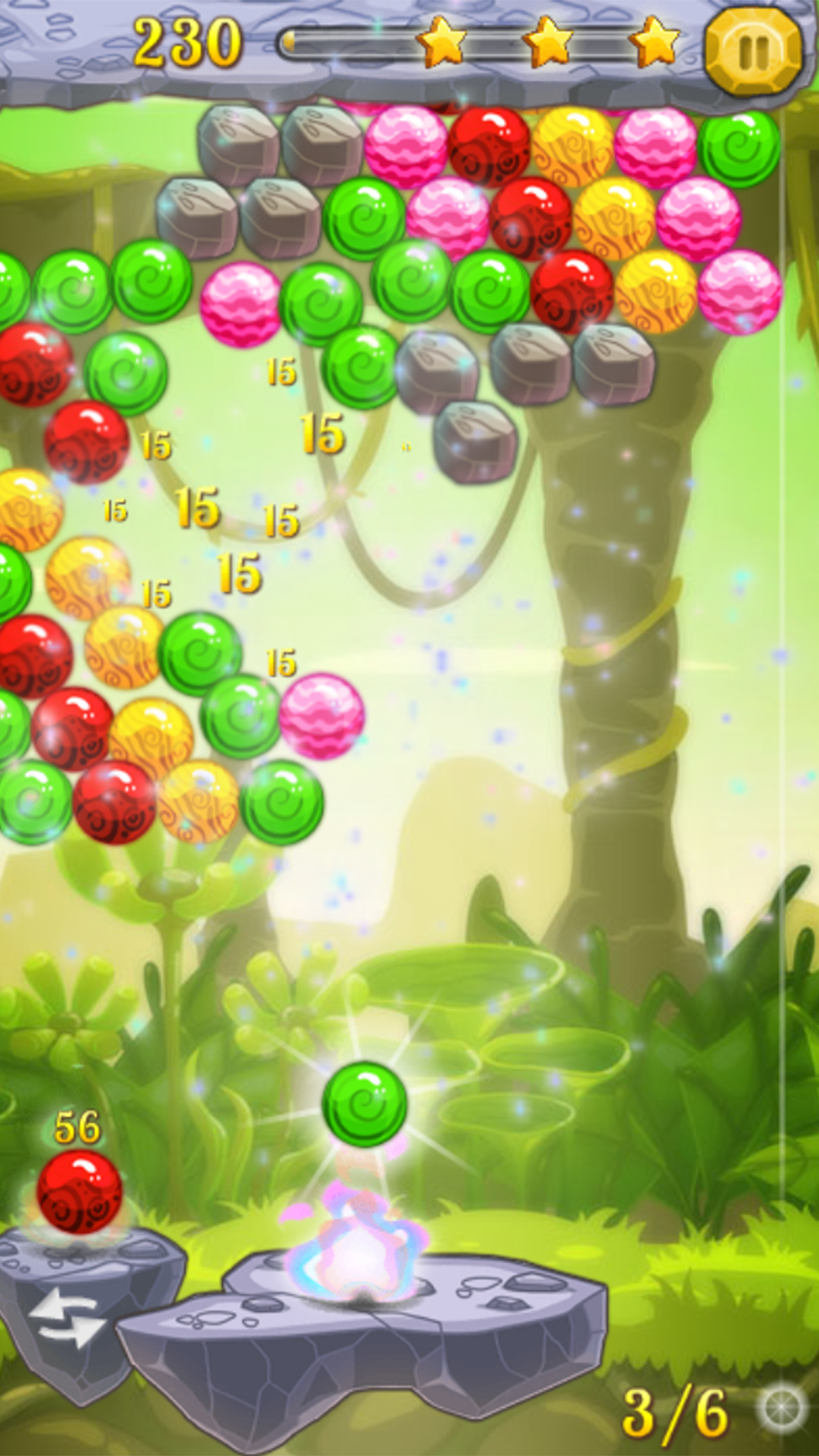 50 hand-designed levels of bubble shooting action across 5 worlds including special items, power-ups, level challenges and thousands of bubbles to match!