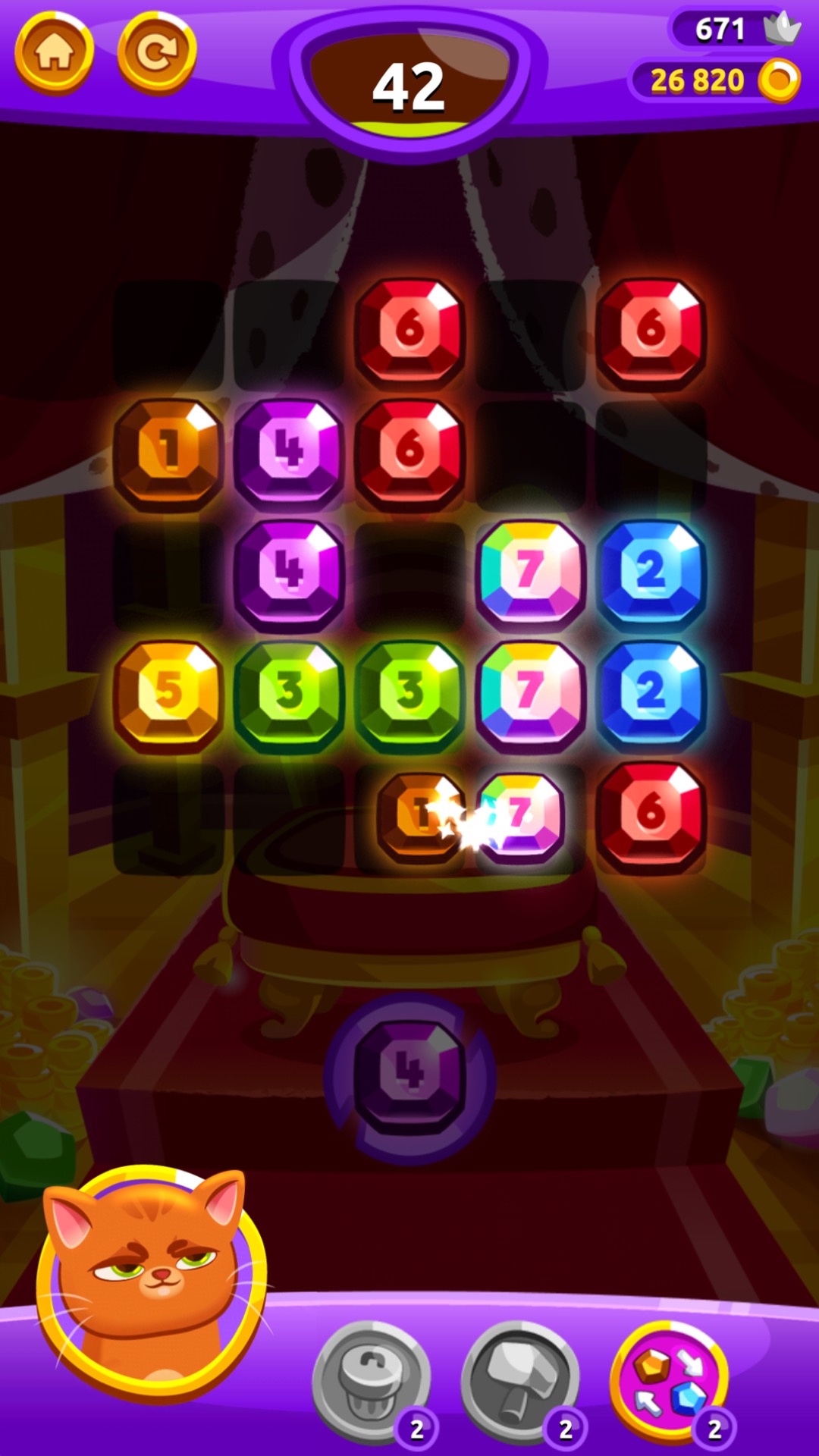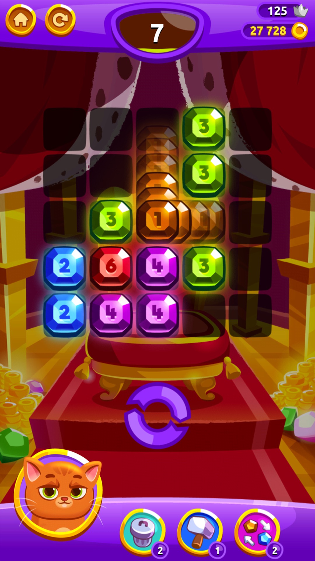 How to play? Drag and drop gems to the grid. Rotate blocks of gems before placing them to combine at least 3 gems with the same number in a row or a column. You will get merged gems with higher numbers. Merge gems up to number 7 and see what happens. Be careful not to fill the grid!