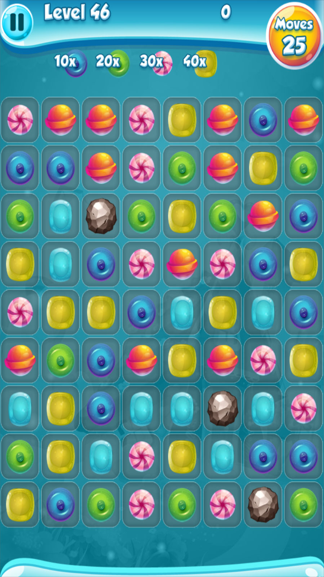 Relaxing and addictive game play swapping sweet candy in 54 levels of excitement with cool rewards a long the way.
