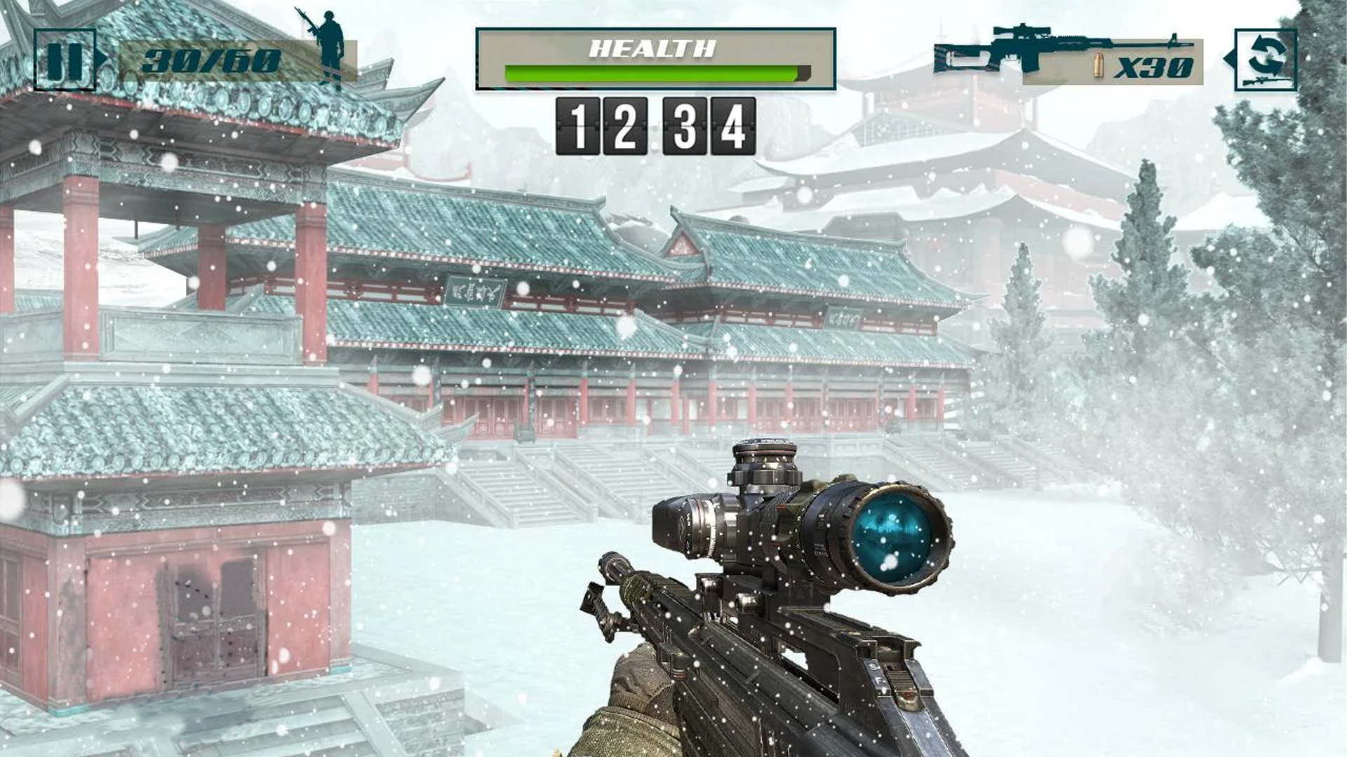 Keep your sniper rifle gun at ready at your side as you enter temple covertly. Use stealth tactics of an experienced military spy agent in this no wifi FPS game.