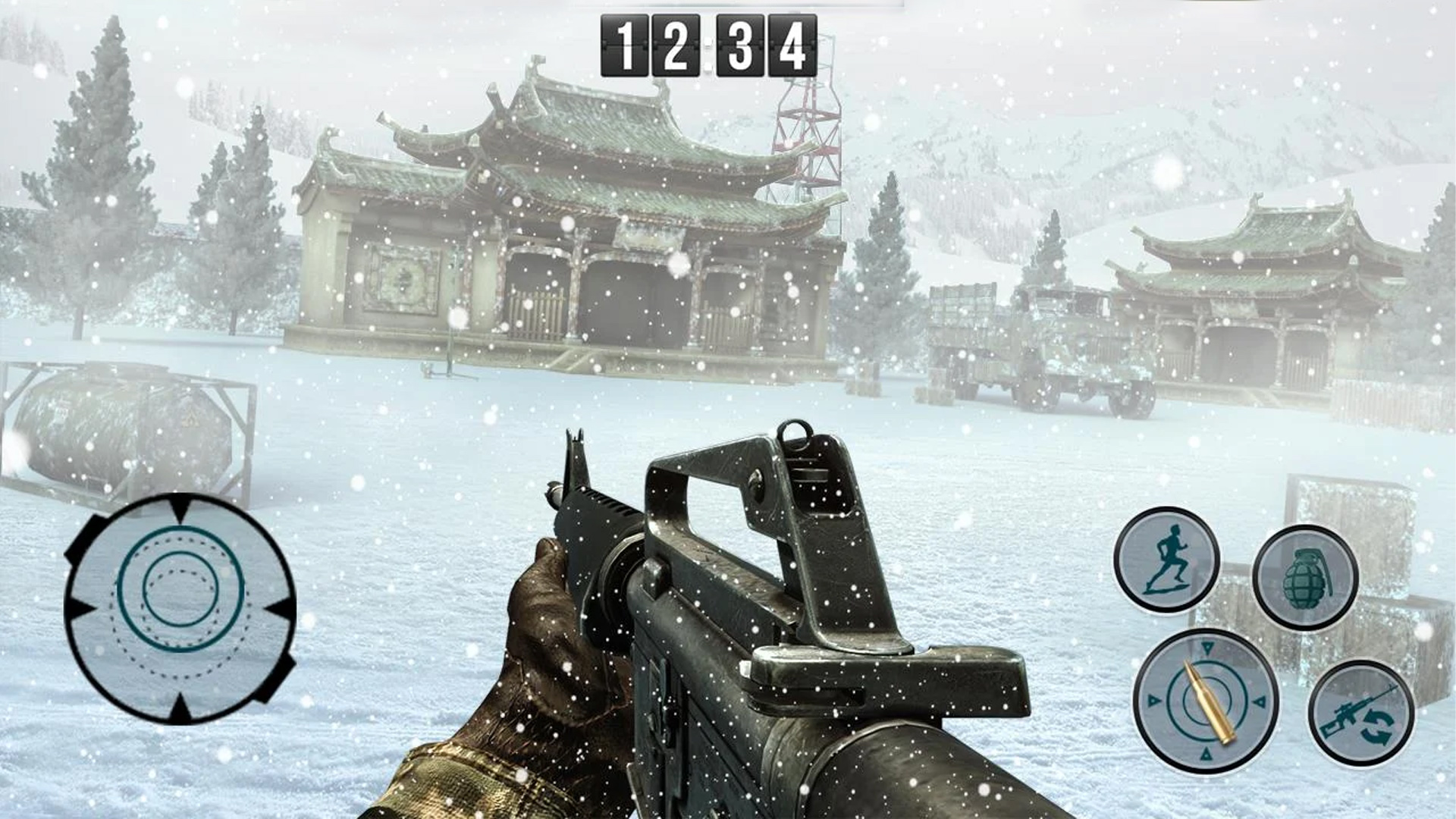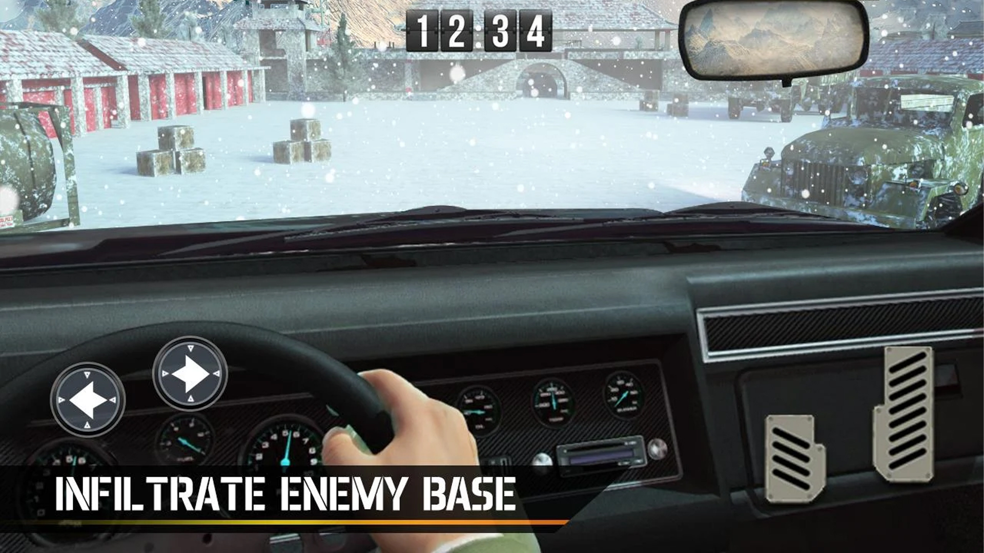 Make sure you infiltrate enemy base with the right camouflage in this snow covered environment. Use your cover to obtain an enemy vehicle truck and finish your task as top army task. Obtaining the enemy's vehicle truck is key to winning this immersive war game on your mobile devices.