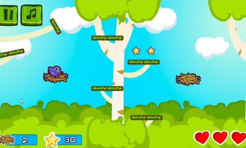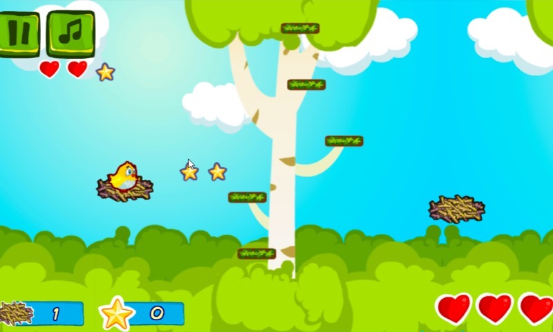 Look at all these cute, little baby birds who don't know yet how to fly. Make them spring from the nest to nest, but take care and aim precisely.
