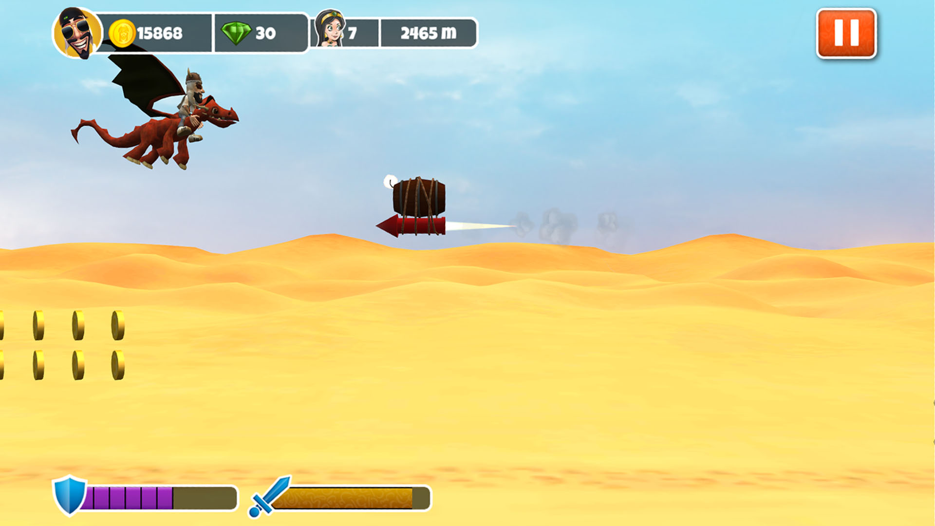 To save Mussa’s fans you can equip the armored camel with many improvements achieved by earning experience and leveling up the camel. Armors, special powers and weapons are going to make your armored camel super powerful to let him support better your adventure.