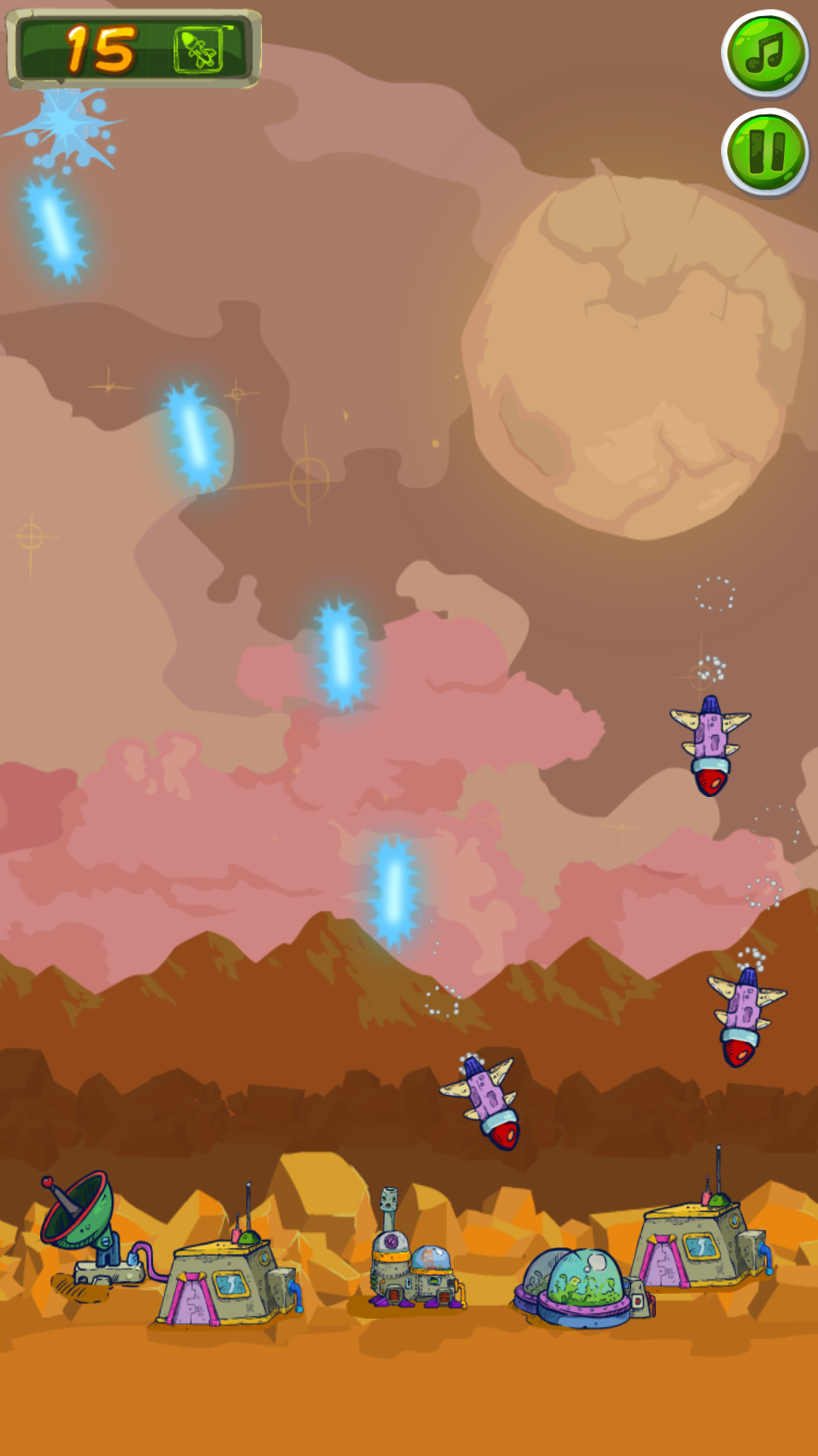 Their attack arrives in waves and seems chaotic at times – understand their attach patterns and shoot them off the sky before they can come for us. How long will we survive?
