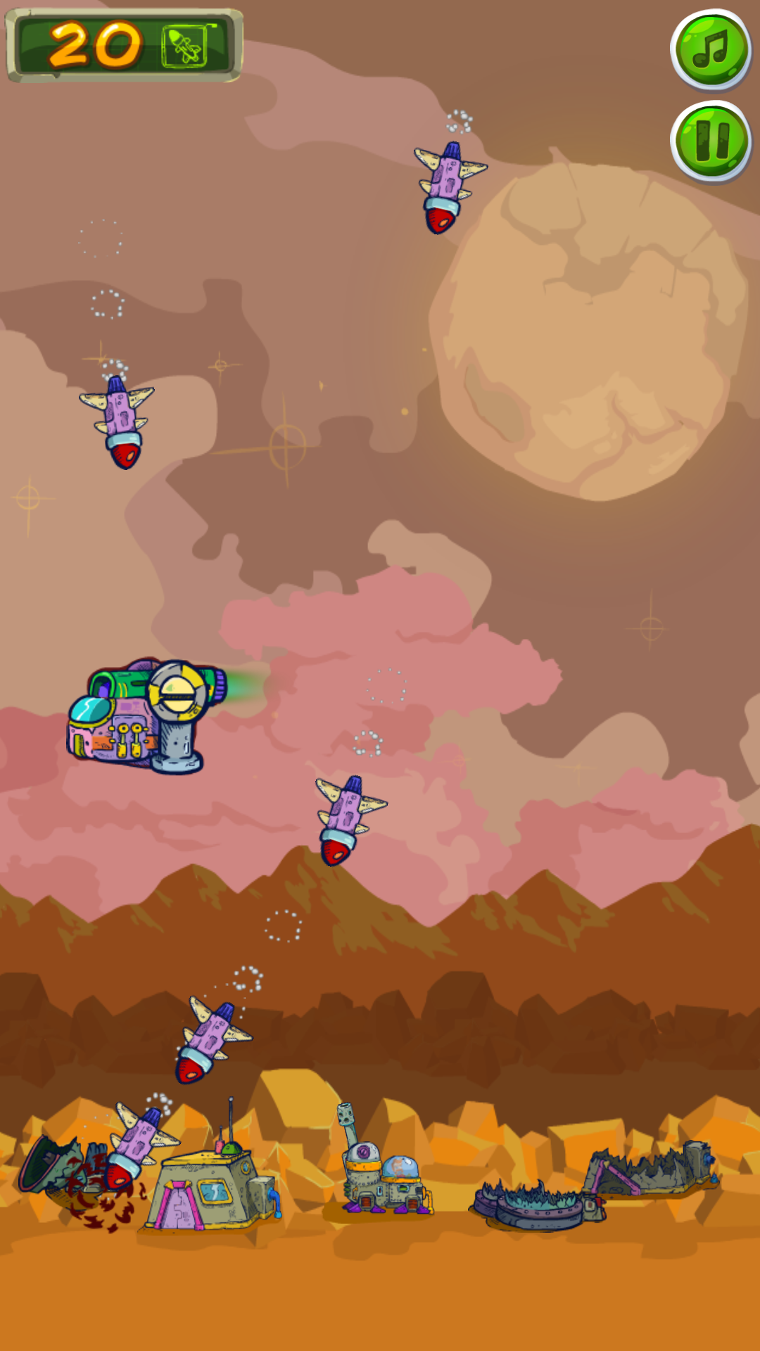 Control the high power laser cannon and defend our base from the alien attack.