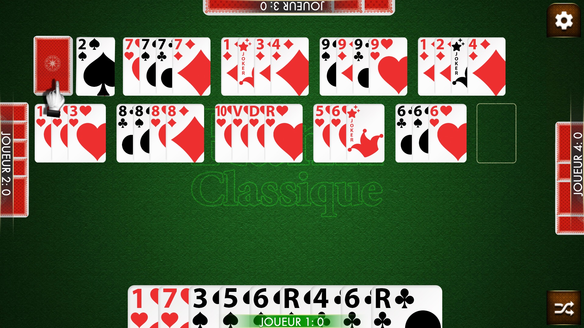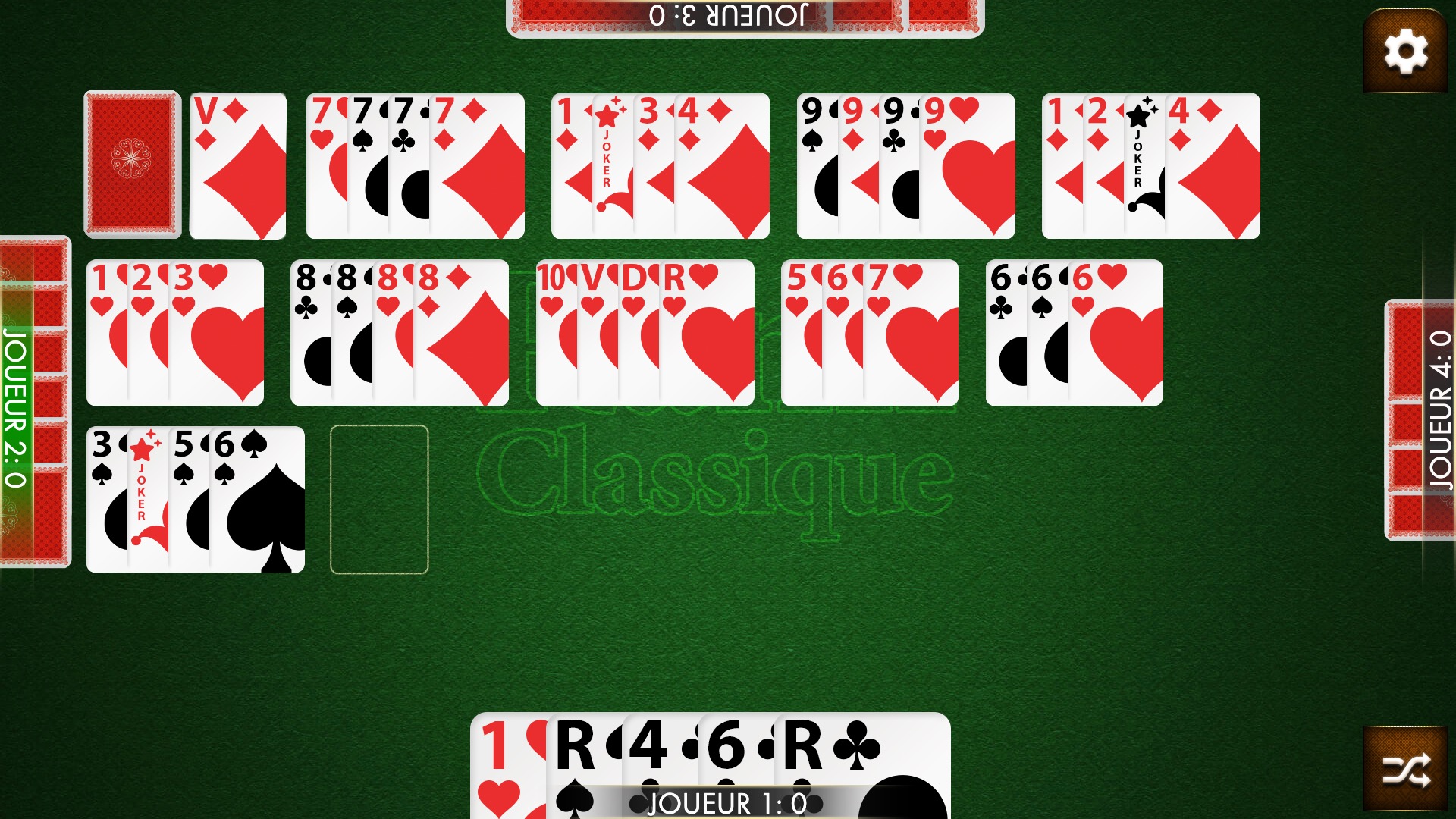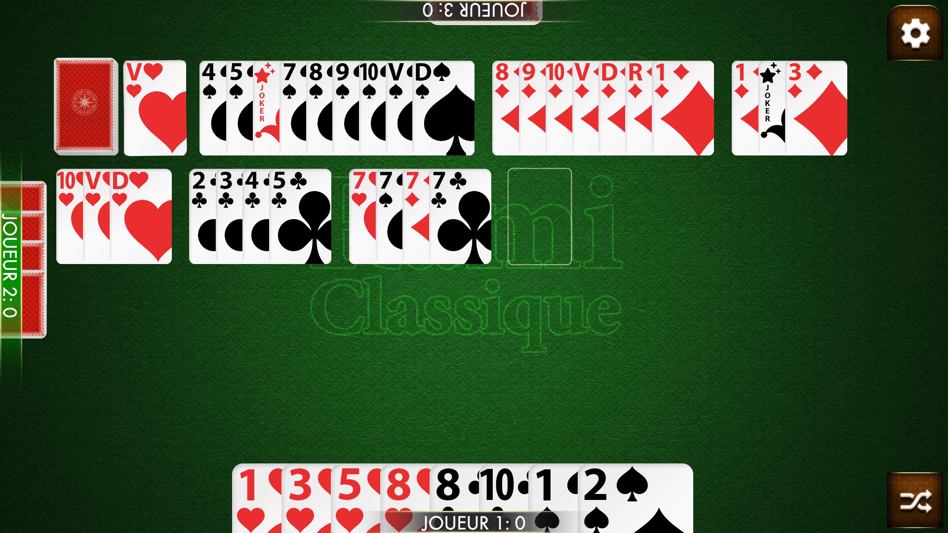 The goal of the game: be the first player to put all your cards on the table in one or more times to win a round. The score of cards still in the hands by other players will be awarded to the winner of the round. Will you be the player to first reach 200 points and win the game? Can you beat our challenging AI opponents?